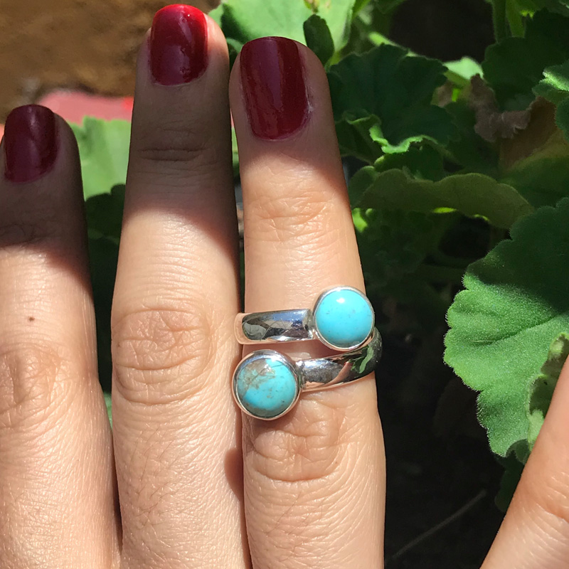 Turquesa redonda mini doble. Plata .925. Ajustable.