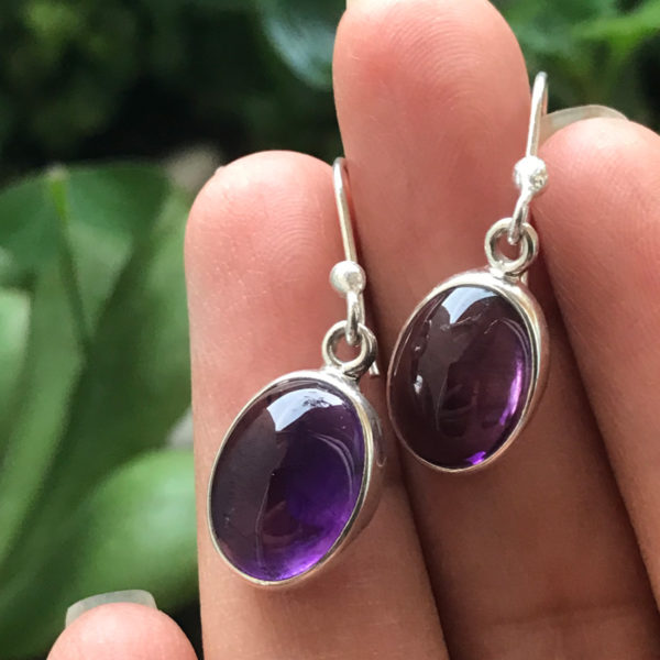 Amatistas corte cabujón ovalo. Plata .925; 1.5 cm de altura más gancho.