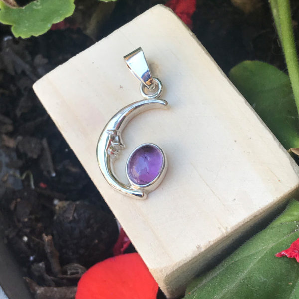 Amatista ovalada. Plata .925; 2 cm de latura más pasacadanas..